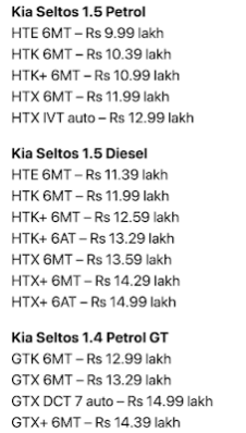 According to rushlane the prices were leaked at a dealer event for training people on the car. And I am reproducing it here with the link to the original article as well in case you want to read it. If you look at the pricing it starts at 10 lacs for the base petrol and goes upto 17 lac for the top end GT variants in diesel, turbo and automatic. Extremely aggressive as it can kill everything in the way of this price bracket.