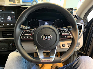 KIA offers you a heads up display which indicates speed and navigation details just beyond the steering. The display kind of merges with the road when you drive and its least intrusive. I felt the colours and fonts used in the display were brilliant and is helpful to the driver. However it can perhaps show many more things like mirroring a google map in actuals, or gear information, etc. Just the speed and road names as you drive is not so useful for a seasoned driver.