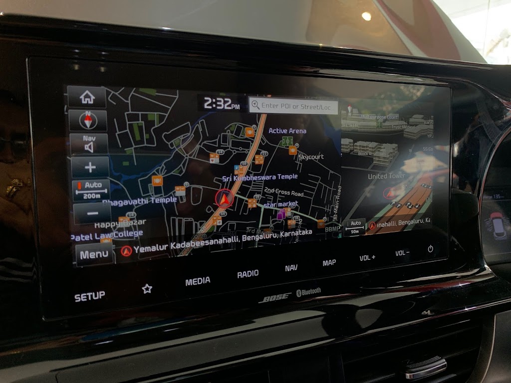 KIA offers you a heads up display which indicates speed and navigation details just beyond the steering. The display kind of merges with the road when you drive and its least intrusive. I felt the colours and fonts used in the display were brilliant and is helpful to the driver. However it can perhaps show many more things like mirroring a google map in actuals, or gear information, etc. Just the speed and road names as you drive is not so useful for a seasoned driver.